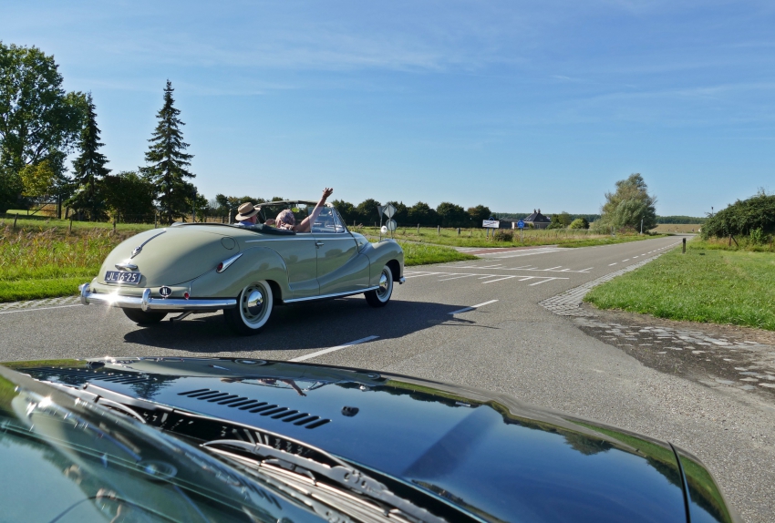 Op zondag 7 september vond de eerste autorit na de zomervakantie plaats onder zomerse omstandigheden richting Zeeuws-Vlaanderen. Na een warme ontvangst en koffie, kregen nieuwe leden en de familie Knook speciale aandacht. Dankzij de route-uitzetters werd de Iron-man triatlon handig omzeild. De lunch vond plaats op een struisvogelboerderij, waar de deelnemers meer leerden over deze dieren. Na de lunch werd de tocht voortgezet langs landelijke wegen, over de grens met België en langs het strand, waarna de dag werd afgesloten bij Restaurant “De Kraag” met een borrel en gezellig samenzijn. De dag werd als zeer geslaagd en goed georganiseerd ervaren.